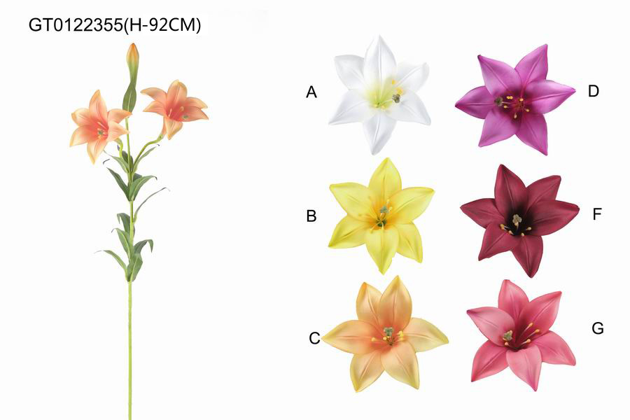 ITEM NO.: GT0122355 DESC.: SINGLE LILY X2 FLOWER &1 FRUIT (H-92CM) PACKING: 24PC/INNER BOX, 72PC/ MASTER CARTON, 0.2CBM/MASTER CARTON