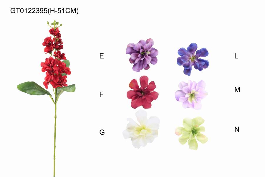 ITEM NO.: GT0122395 DESC.: SINGLE DELPHINIUM (H-51CM) PACKING: 48PC/INNER BOX, 480PC/ MASTER CARTON, 0.21CBM/MASTER CARTON