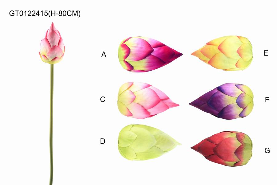 ITEM NO.: GT0122415 DESC.: SINGLE LOTUS BUD (SPRING) (H-80CM) PACKING: 24PC/INNER BOX, 192PC/ MASTER CARTON, 0.27CBM/MASTER CARTON