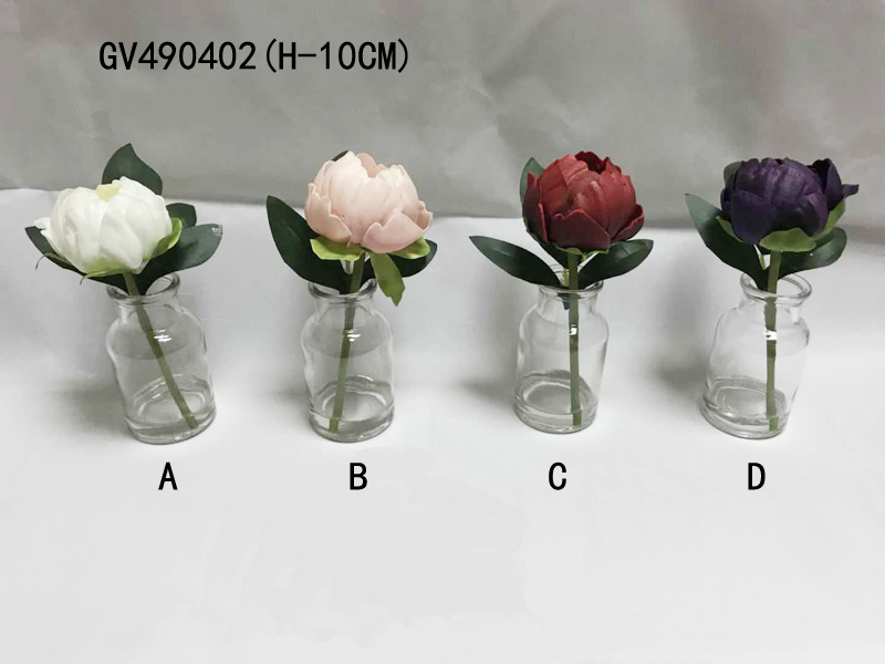 DESC.: PU PEONY IN GLASS POT WITH ART WATER (H-10CM)