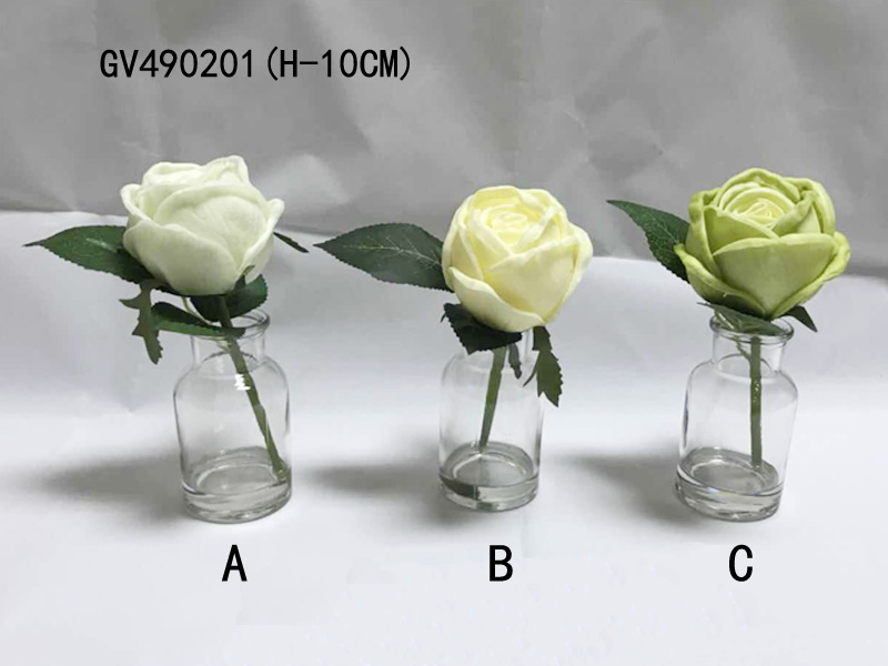 DESC.: PU ROSE IN GLASS POT WITH ART WATER (H-10CM)