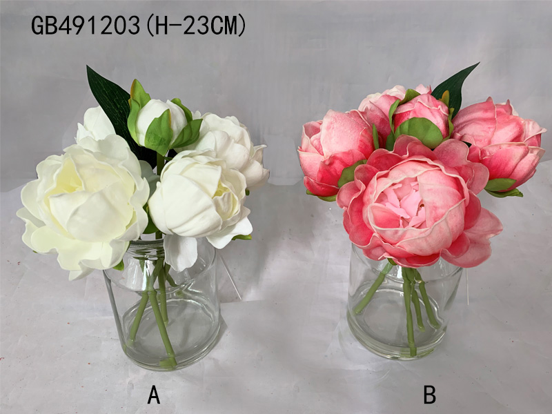 DESC.: PU TULIP PEONY*5 IN GLASS POT WITH ART WATER (H-65CM)