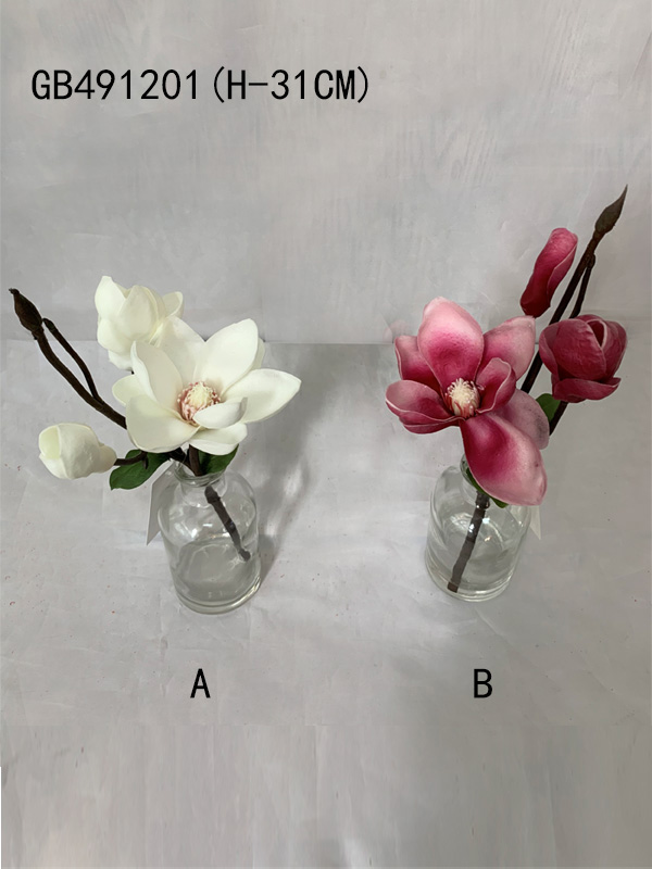 DESC.:PU MAGNOLIA IN GLASS POT WITH ART WATER(H-31CM)