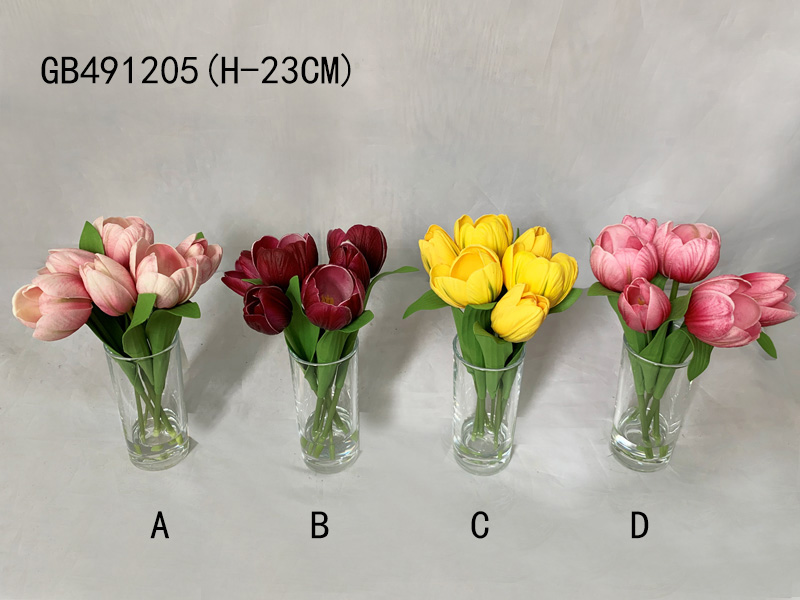DESC.: PU TULIP*6 IN GLASS POT WITH ART WATER (H-23CM)