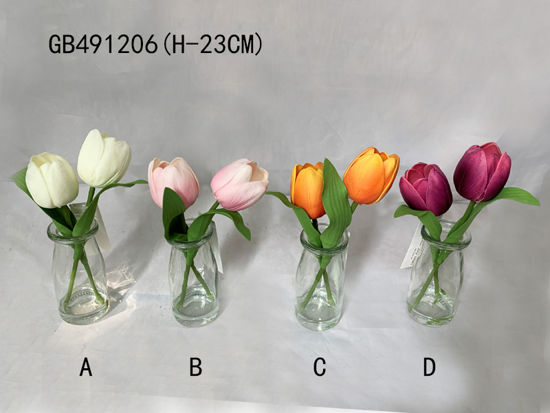 DESC.: PU TULIP*2 IN GLASS POT WITH ART WATER (H-23CM)