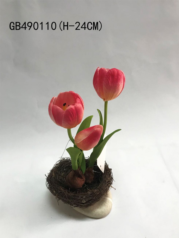 DESC.: PU TULIP*3 WITH TRAY (H-24CM)
