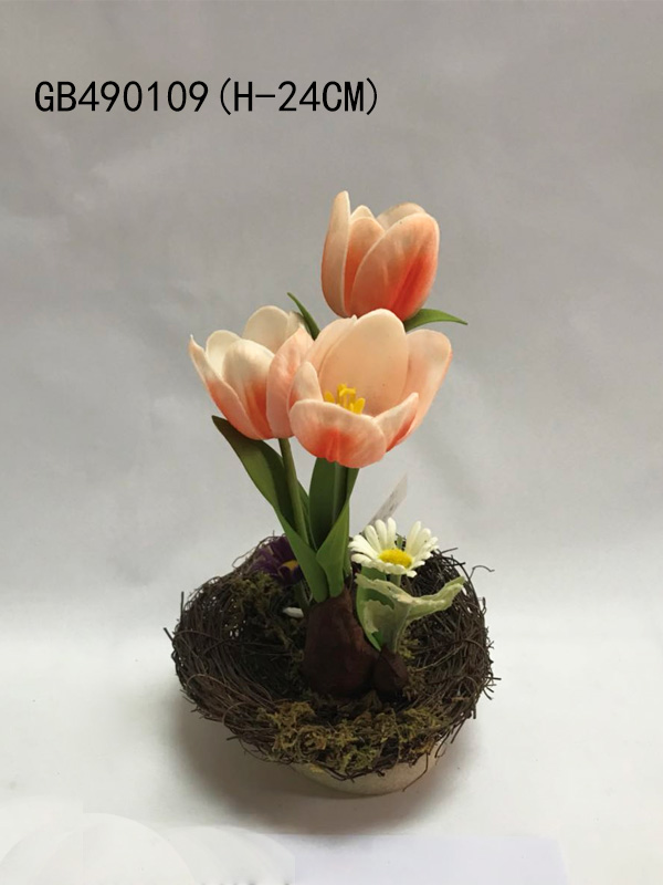 DESC.: PU TULIP*3 WITH TRAY (H-24CM)