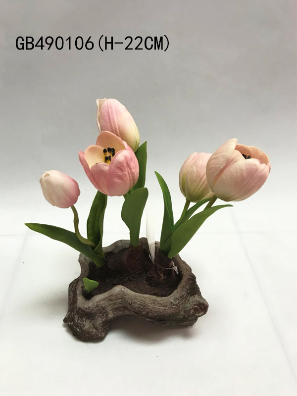 DESC.: PU TULIP*5 WITH POT (H-22CM)