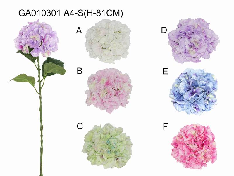 ITEM NO.: GA010301 A4-S DESC.: Single hydrangea(H-81CM) PACKING: 12PC/INNER BOX, 72PC/MASTER CARTON, 0.30CBM/MASTER CARTON