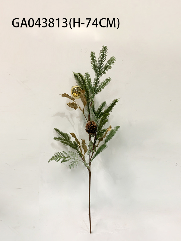 DESC.: SINGLE PINE BRANCH WITH GOLD LEAF AND BALL (H-74CM)