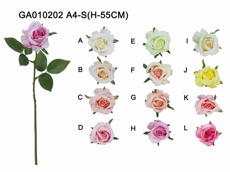 ITEM NO.: GA010202 A4-S DESC.: Single rose (H-55CM) PACKING: 24PC/INNER BOX, 288PC/MASTER CARTON, 0.16CBM/MASTER CARTON