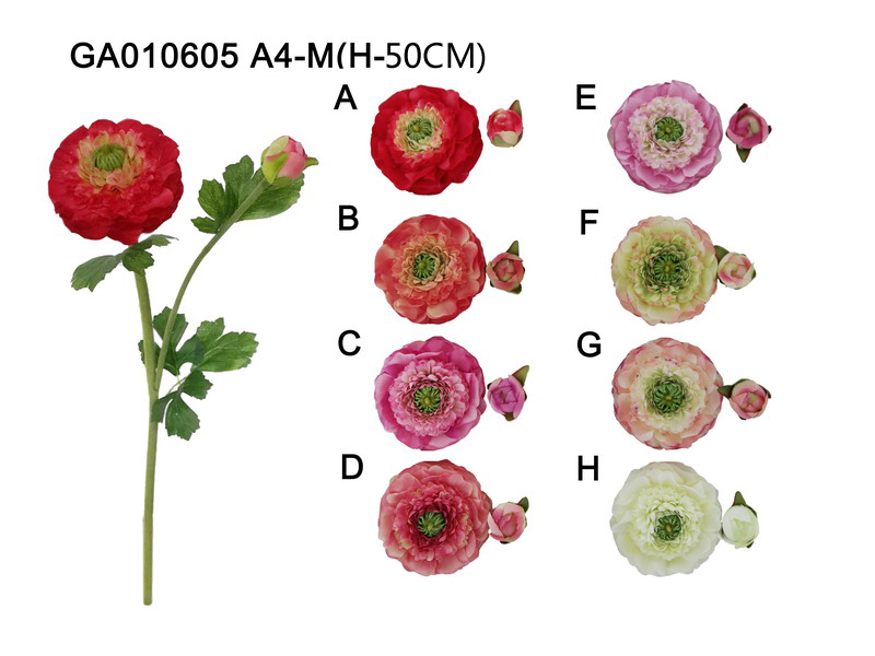ITEM NO.: GA010605 A4-M DESC.: Single camellia(H-50CM) PACKING: 36PC/INNER BOX, 360PC/MASTER CARTON, 0.23CBM/MASTER CARTON