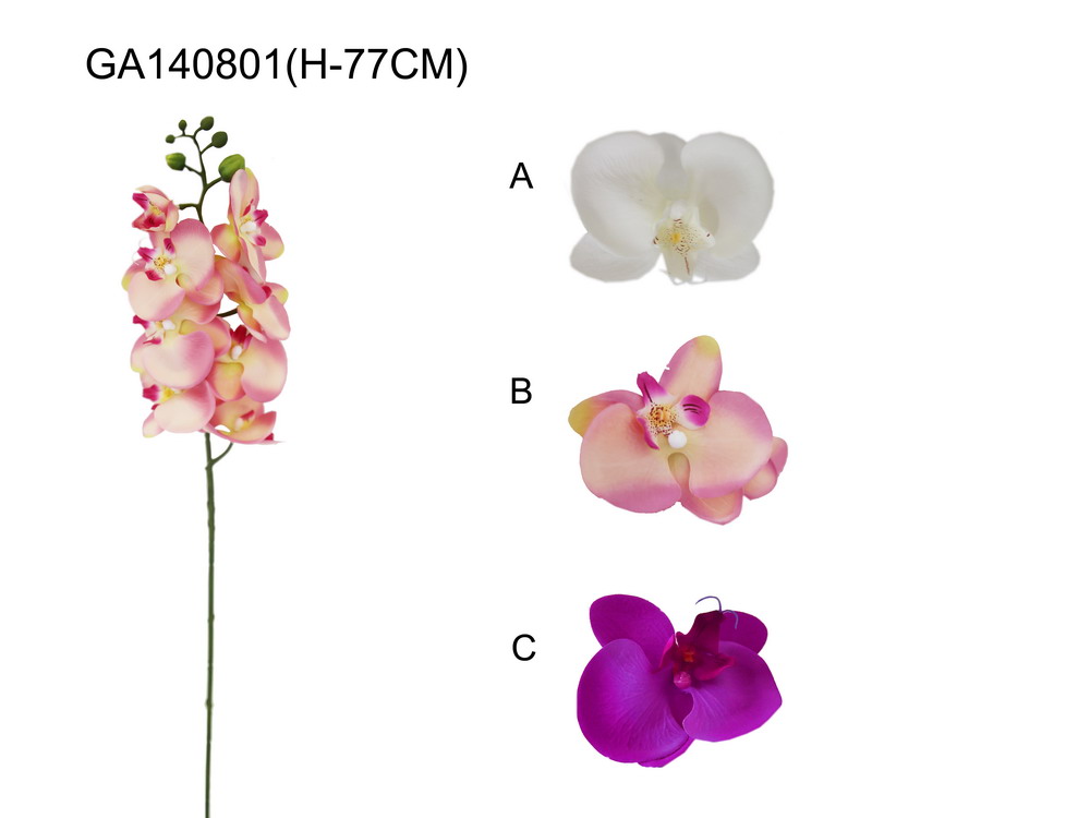 ITEM NO.: GA140801 DESC.: Single phalaenopsid(H-77CM) PACKING: 12PC/INNER BOX, 144PC/MASTER CARTON, 0.24CBM/MASTER CARTON