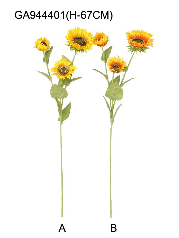 ITEM NO.: GA944401 DESC.: Single Sunflower*3(H-67CM) PACKING: 24PC/INNER BOX, 288PC/MASTER CARTON, 0.39CBM/MASTER CARTON